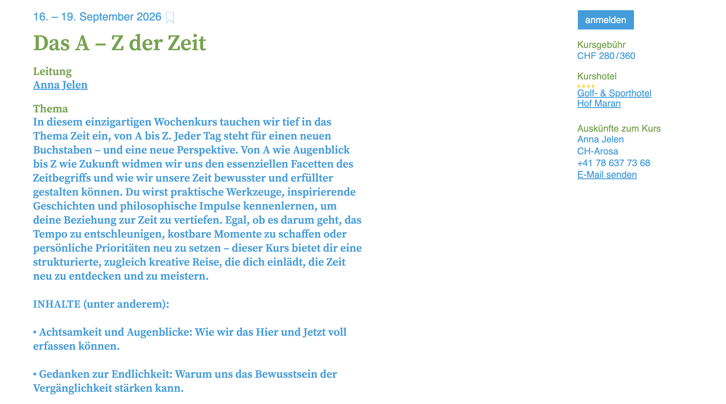 Das A-Z der Zeit (Musikkurswochen in Arosa)